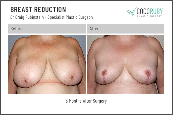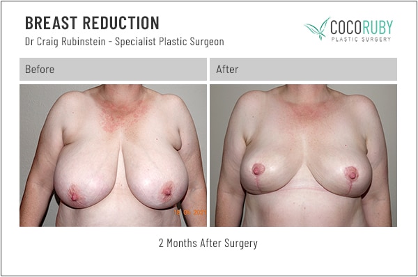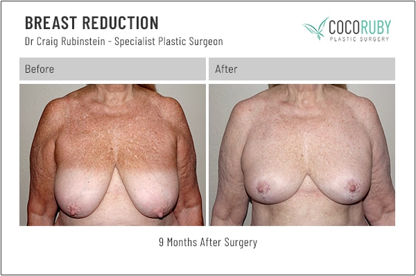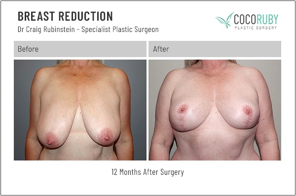 Breast reduction (Reduction Mammoplasty) before and after photos from Dr Craig Rubinstein, Melbourne-based breast surgery plastic surgeon.